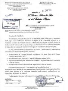 Le ministère des sports a décidé de mettre fin à son contrat, comme annoncé dans un courrier officiel du directeur national des sports. Cette décision fait suite aux objectifs non atteints par l’entraîneur, notamment l’élimination du Mali en quarts de finale de la CAN 2025.